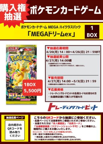 | 注意点 | 過去にポケセンオンラインで「MEGAドリームex」BOXを購入していた場合は「落選」 |
