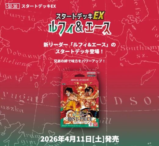 2026年4月11日(土)に待望のリリースを迎えた、ワンピースカードゲームの最新構築済みデッキ『スタートデッキEX ルフィ&エース【ST-30】』。