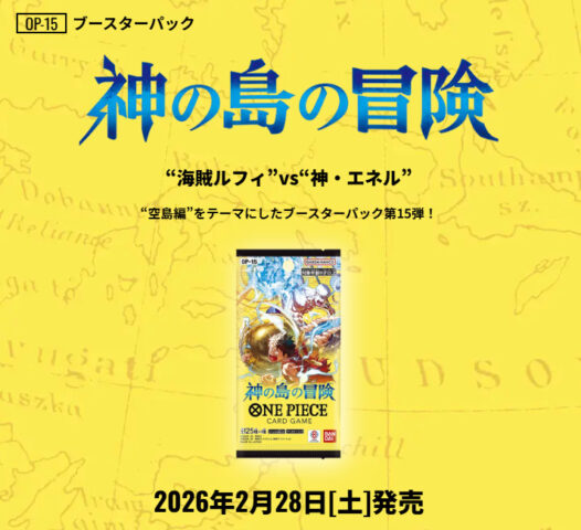 2026年2月28日(土)、待ちに待ったONE PIECEカードゲームの最新ブースターパック『神の島の冒険【OP-15】』がついに発売ですね!